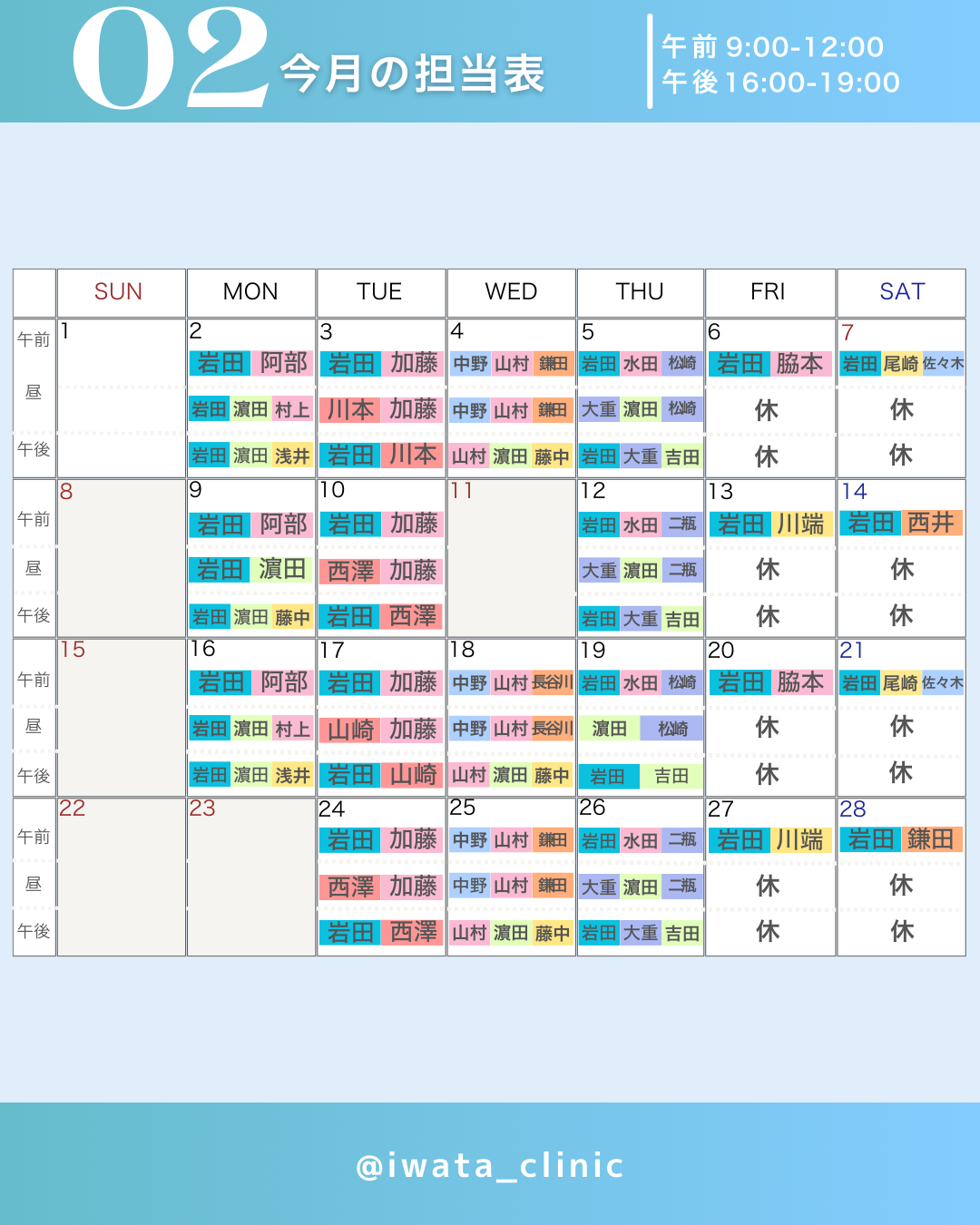 2月の担当医表です。