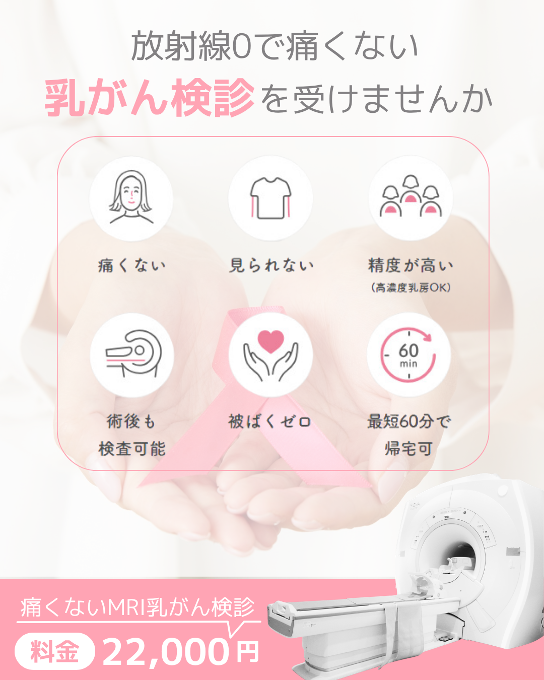 当院で実施しております「痛くないMRI乳がん検診」につきまして、より多くの皆様にご自身の体を守るケアをしていただきたいという思いから、本日より検診費用を改定いたしました。